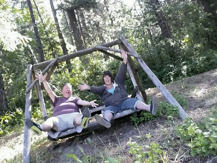 My buddies Todd & Sheila were here this weekend and I caught them being silly on the swing in the upper meadow!  We had fun exploring the many varieties of wildflowers in the meadow and trails with Sheila's camera.  Thanks for playing with me... Love, Millie